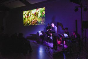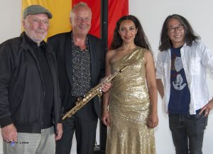 Maharani Chakrabarti (piano), Rainer Fabich (saxophone), Wolfgang Lackerschmid (vibraphone), Andrea Regenauer (harp) & Yongbo Zhao (paintings, comments)