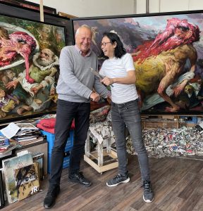 Begleite Kommentare und Statement zur Musik und den Bildern geben Einblick in die persönlichen Sichtweise des Malers und seiner fundamentalen Kritik am Weltgeschehen, die Vieles mal grotesk, mal komisch oder aber bitterernst und messerscharf auf den Punkt bringt.